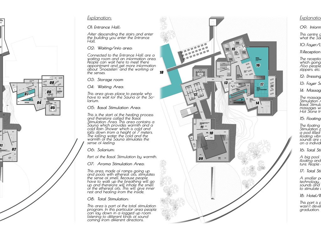 The concept for my graduation project became Snoezelen. Let people feel human again and prevent alienation from reality. A sanatorium where people can be healed from alienation. Back to the basics of being human by primary activation or basal stimulation.