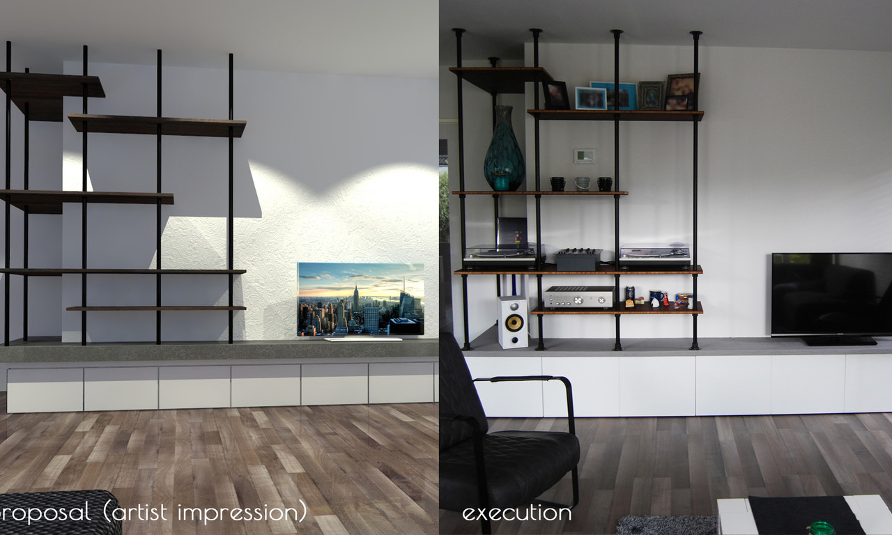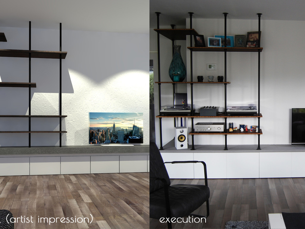 This TV-unit is designed for our new house. The idea was to have an extra feature within the livingroom which can display and store. In coöperation with Yoep Roth, who is a talented funiture maker (www.yoeproth.nl), we made this idea real.