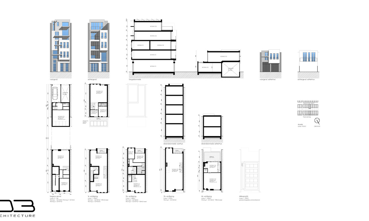 Within the development around the Buiksloterham in Amsterdam Noord, we are asked to design an apartment building containing three dwellings on a so called ‘self-build plan’ (zelfbouwkavel Buiksloterham Amsterdam Noord). On the plot there is a set maximum volume and a few set rules. Besides that we are free to design a plan.