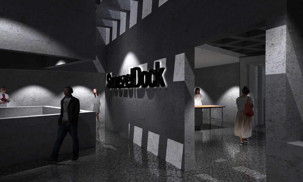 Where is this building placed? It should be placed in an area where the surroundings will be transformed from a real environment to a place which is prepared for alienated people. A transformation of an area without a lot of rules, which is then transformed into an area with a lot of rules which prevents resistance. People can move around without watching. Around the banks of the river IJ, that would be the Danzigekade at the Houthavens. This is where SnoezelDock will be situated.
